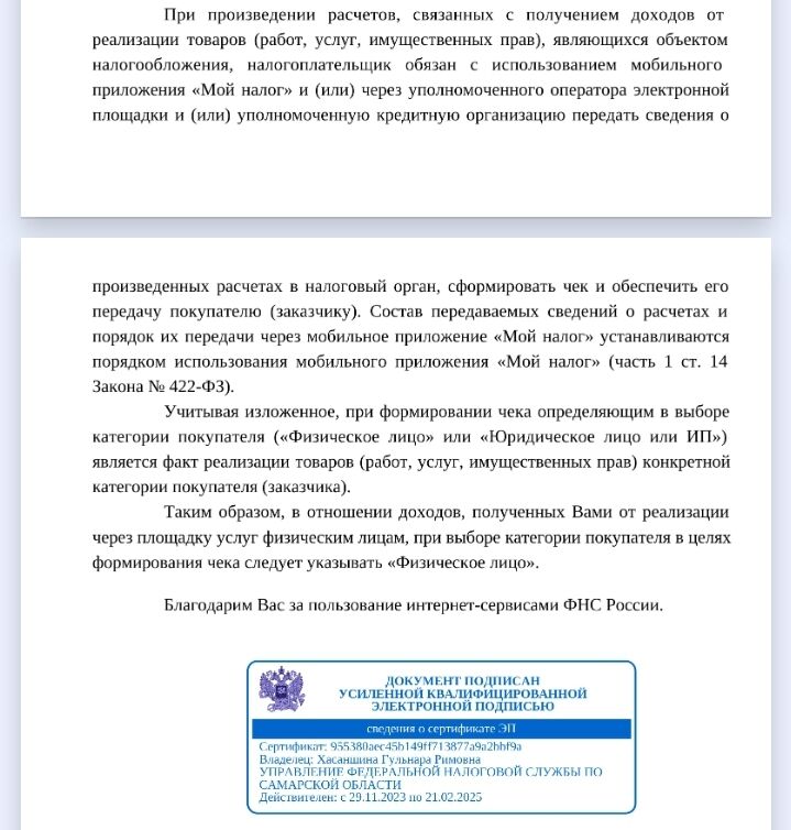 Мне в принципе все равно, я на тот момент уже был самозанятым, но они сами формировали чек в Мой налог и указывали юр. лица (6 %), хотя обещали что будут работать над тем, чтобы формировать чеки для физ лиц.