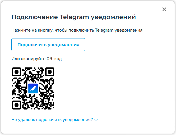 3) Если предложенные варианты вам не подходят или подключить бота не удается, в появившемся окне нажмите на текст "Не удалось подключить уведомления?"