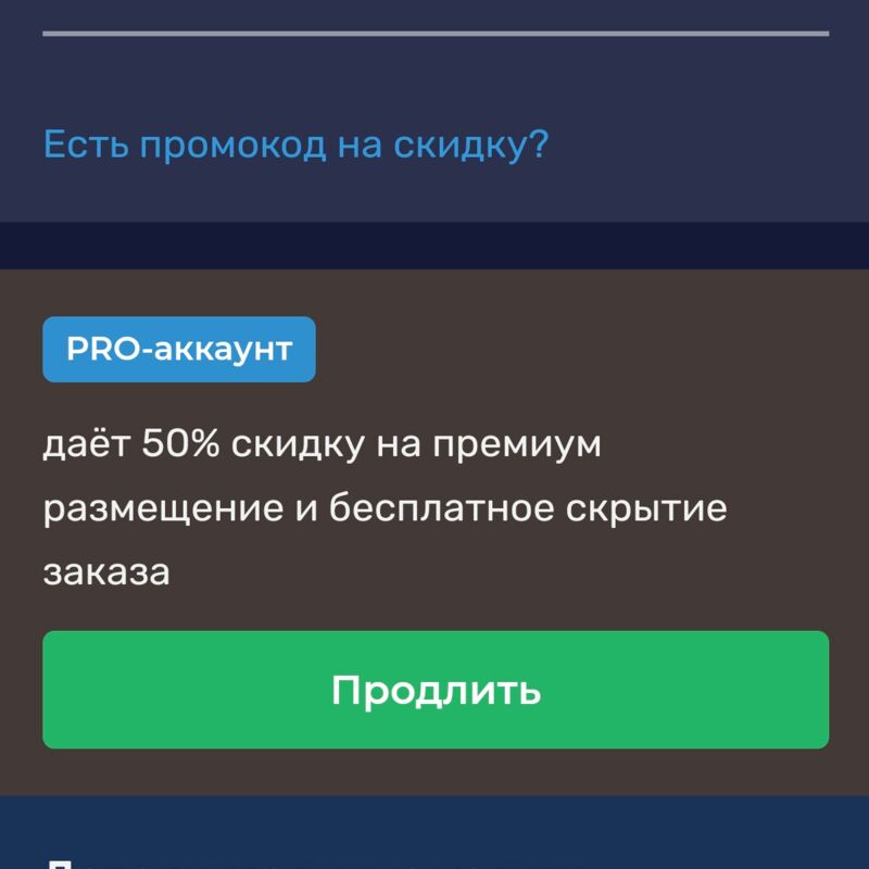 Стоимость услуги скрытого заказа без PRO-аккаунта - 100 рублей, с PRO-аккаунтом - бесплатно.