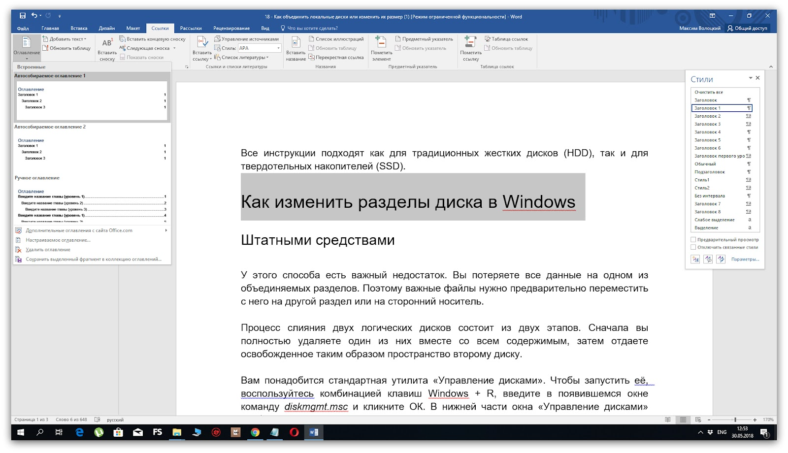 Автооглавление в Word упрощает работу. Но иногда оно отображает неверные данные. Ошибки возникают из-за неправильного форматирования.