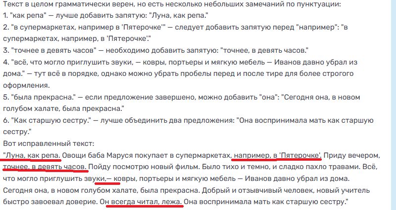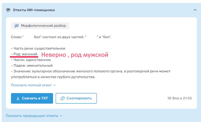 Здесь ИИ справляется только с самыми очевидными правилами. Навскидку загнал иное. Количество ошибок вполне предсказуемо. Вывод: для школьных диктантов и работ по РЯ точно не подойдет. Только для курсовых и т. п. по техническим специальностям, где и сам преподаватель вряд ли заглядывал в «Правила русской орфографии и пунктуации" под редакцией Лопатина.