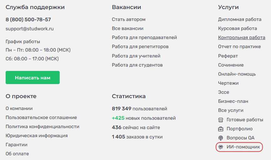 Непонятно только, почему этот инструмент размещен в столь скромном месте, его ведь там не найдет никто. Как будто стыдитесь чего-то. Нужно и на стартовой странице разместить, чтобы любой студент видел, и в главном меню. Вообще, чтобы на каждой странице в первую очередь в глаза бросалось. Можно даже в каждом заказе баннер добавить. И будет счастье