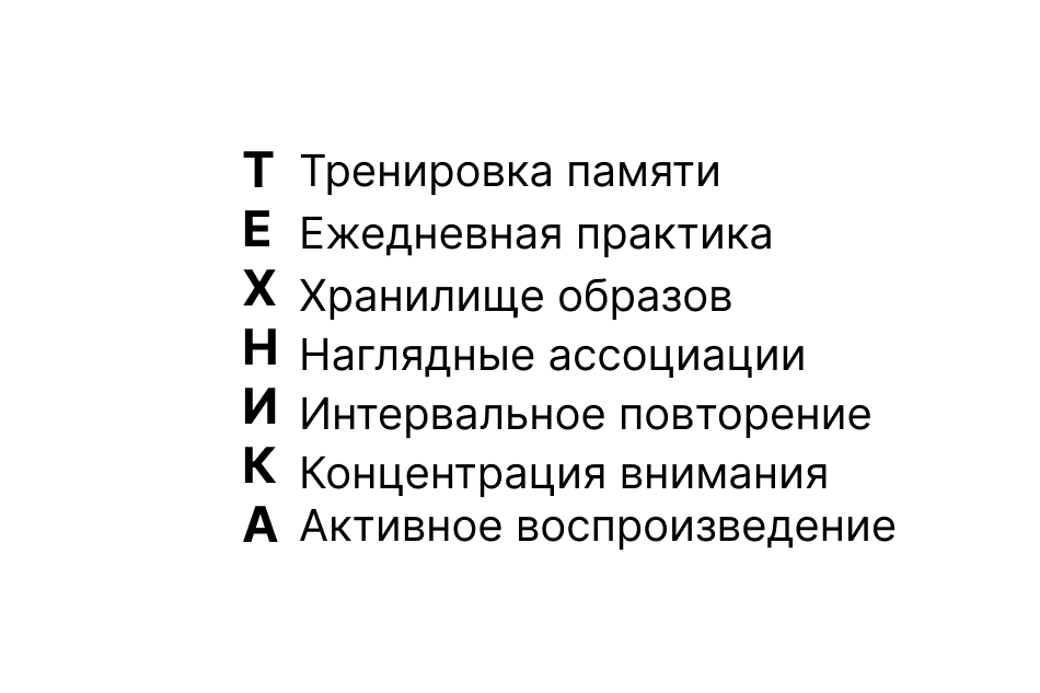 Если требуется запомнить перечень терминов, дат или понятий, обратитесь к следующим уловкам: