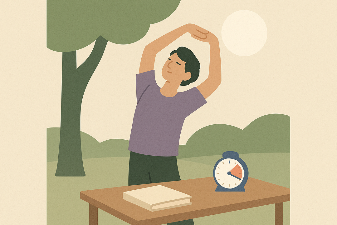 После долгого сидения важно подвигаться. Даже 10 минут прогулки или лёгкой зарядки перезагружают. Ещё один способ — простое дыхательное упражнение: вдох на 4 счёта, выдох на 6. Это снижает тревожность.