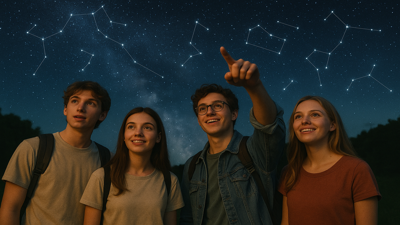 Фото уже лучше, но вот на сгенерированной картинке с созвездиями надо, чтобы пальцем показывали на звезды. И рука непропорционально большая.