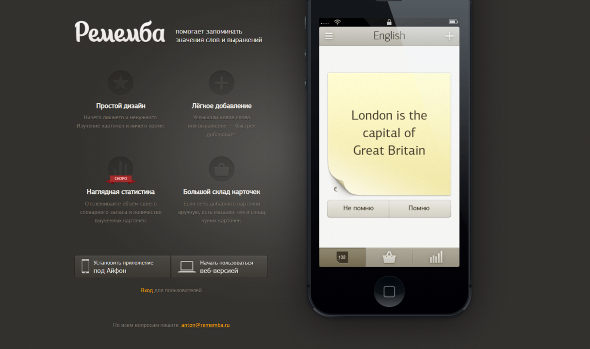 «Ремемба» — приложение для запоминания слов по методу карточек. Минимум лишних функций, только словарь и повторение. Удобно тем, кто хочет «набить» лексику к экзамену.