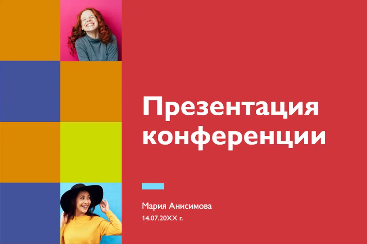 Если у конференции есть обязательный шаблон презентации, уточните его у организаторов или в методичке кафедры заранее.