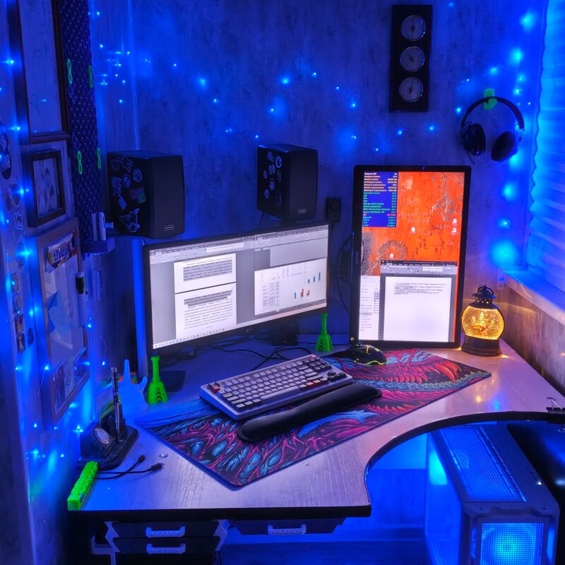 Да и давно хотелось немного свое рабочее место показать. Забавно, три копеечные гирлянды, а как преобразуется - настроение лучше и как-то уходят на второй план заботы.