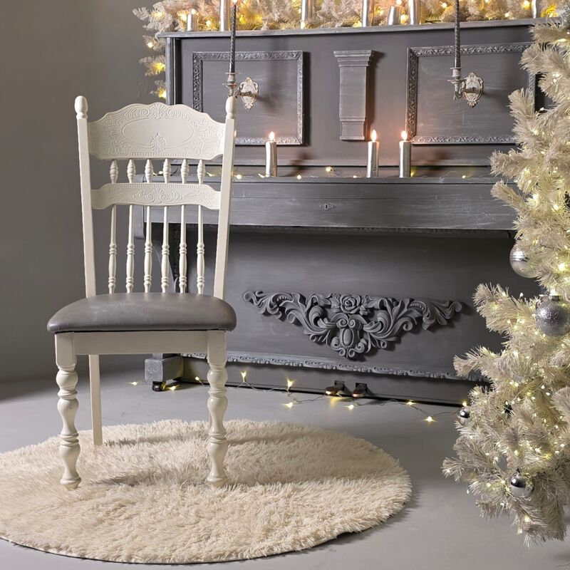 Фортепиано было самым обычным. Это " Енисей" . В прошлом году я его делала бежевым. В этом решила сделать серым. Задекорировала молдингами и состарила. Канделябры тоже "неродные". А, седушка на стуле из искусственной кожи (была темно-коричневой), перекрасила ее меловыми красками в серый и сверху закрепила воском.