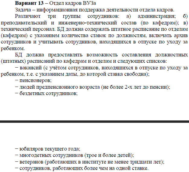 • Есть готовое адекватное решение этой задачи во вложении, включая запросы, но в Access. Это может быть некоторым подспорьем при продумывании таблиц, связей, а также не придётся ломать голову о том, как вообще реализовать тот или иной запрос.