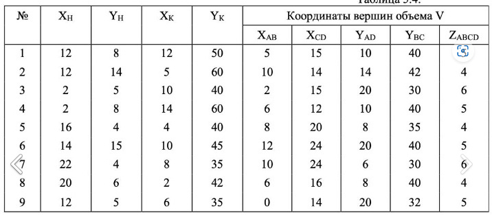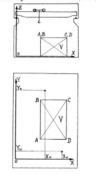 Построить циклограмму, определить длительность цикла и ПВ двигателей для мостового магнитного крана (рисунок) при перемещении груза из точки с координатами XН,YН,ZН (ZН=0) в точку с координатами XК,YК,ZК (ZК=0). Объем V грузом не пересекать. Скорость подъема (спуска) 16 м/мин. Скорость передвижения тележки 55 м/мин. Скорость передвижения крана 100 м/мин. Время взятия и отдачи груза - по 10 с. Время разгона и торможения механизма подъема 2 с, передвижения тележки - 4 с, передвижения крана 8 с. Пролет крана 28 м. Данные по вариантам указаны в таблице 5.4, (размеры даны в м) - можно взять любой вариант