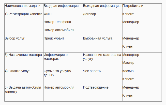 Таблица «Услуги» состоит из атрибутов: код услуги, наименование, стоимость, код механика