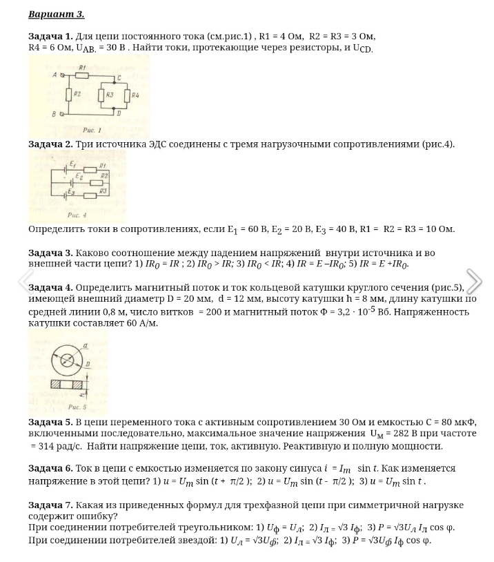 Необходимо выполнить контрольную по электротехнике и электронике. Задания прикрепляю