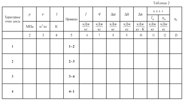 1. Исходные данные для расчета в соответствии с вариантом работы берутся из таблицы 1, а форму цикла из рисунков, изображенных в координатах pv , без учета масштаба.