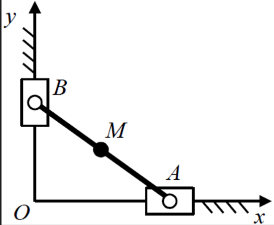 Указание. Положение механической системы определить для момента времени t1, используя уравнения движения точки A. Считать, что точка M совершает относительное движение вдоль прямой AB, а положение точки M в момент времени t1 задано.