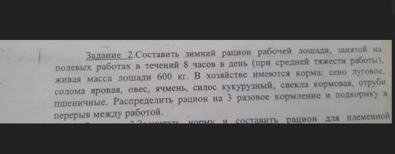 составить рацион лошади