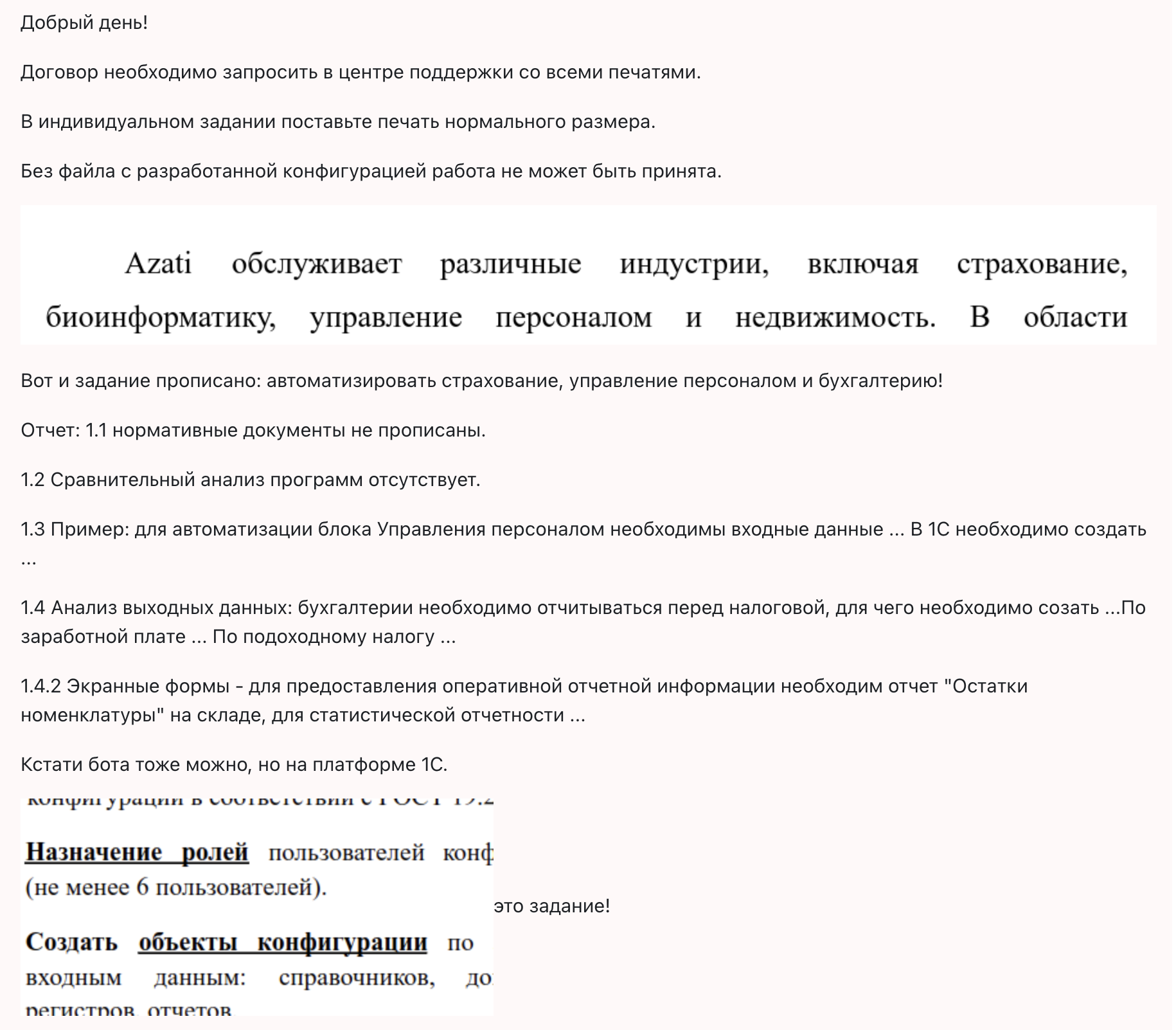 Необходимо доработать/переписать отчет по производственной практике, создать конфигурацию либо бота на платформе 1С