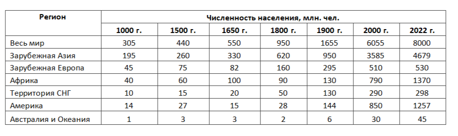 Р а б о т а 1. Динамика размещения населения по регионам мира.