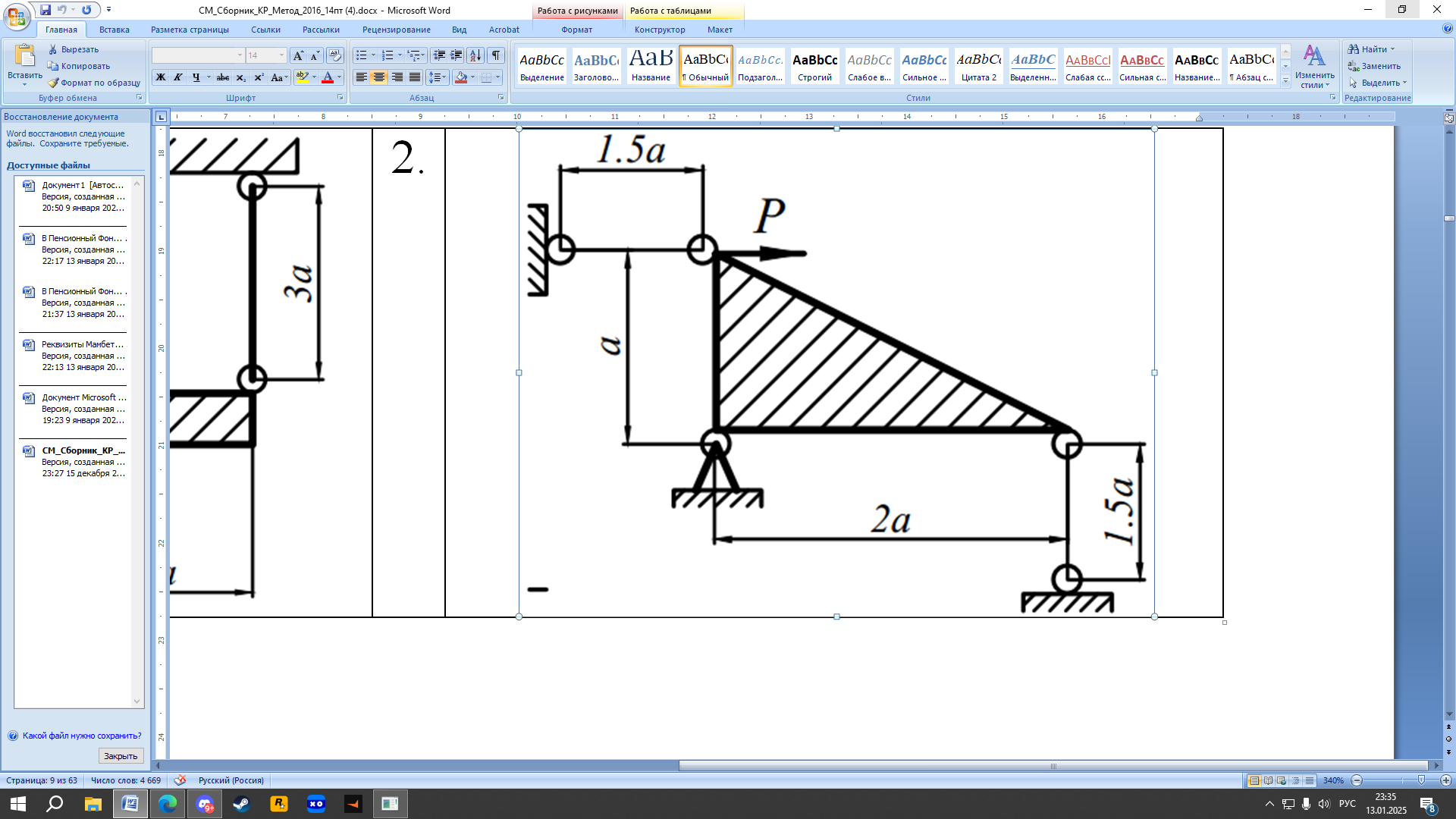 2) определить перемещение точки приложения нагрузок Р, М и в правой части q;
