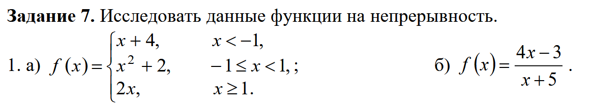 согласно примеру в файлах решить задачу: Исследовать данные функции на непрерывность