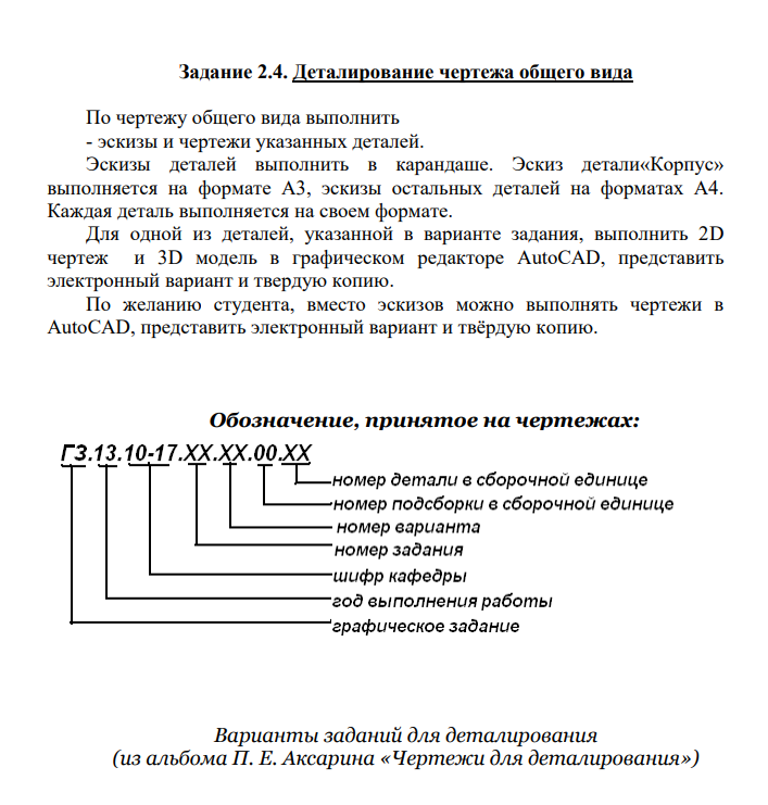 Задача 2.4 - "Деталирование чертежа общего вида"
