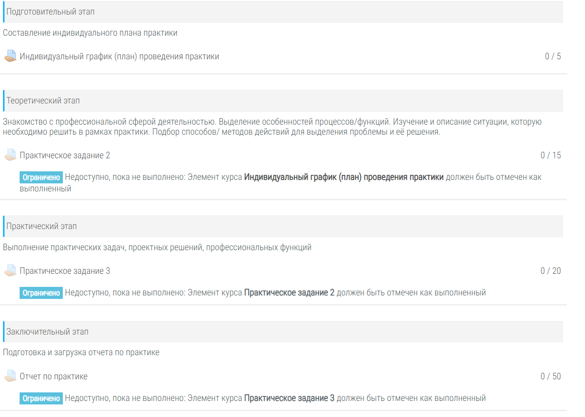 Составление индивидуального плана практики