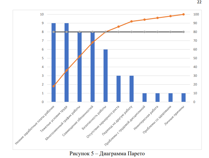 Задание 3.3 Применение диаграммы Парето для выявления наиболее актуальных проблем. Постройте график Парето, придумав условные 50 случаев причин определенной в предыдущем задании проблемы. Разработайте соответствующие управленческие решения к выявленным наиболее важным проблемам.