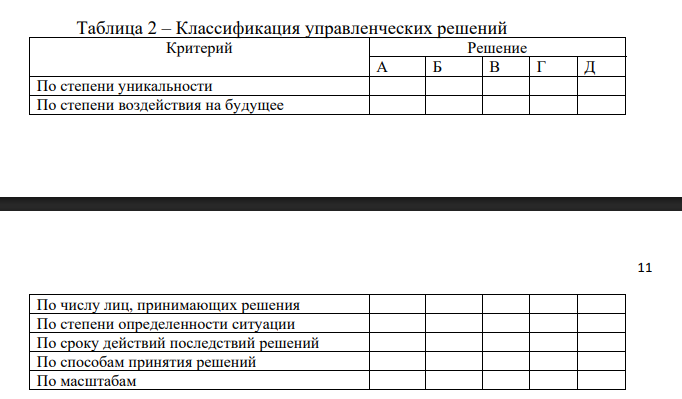 Результаты оформите в таблице: Таблица 2 – Классификация управленческих решений