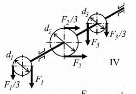 Условие задачи: На вал постоянного сечения насажены три шкива c приложенными к ним силами. Из условия равновесия вала определить силу F3 и построить эпюру крутящего момента.