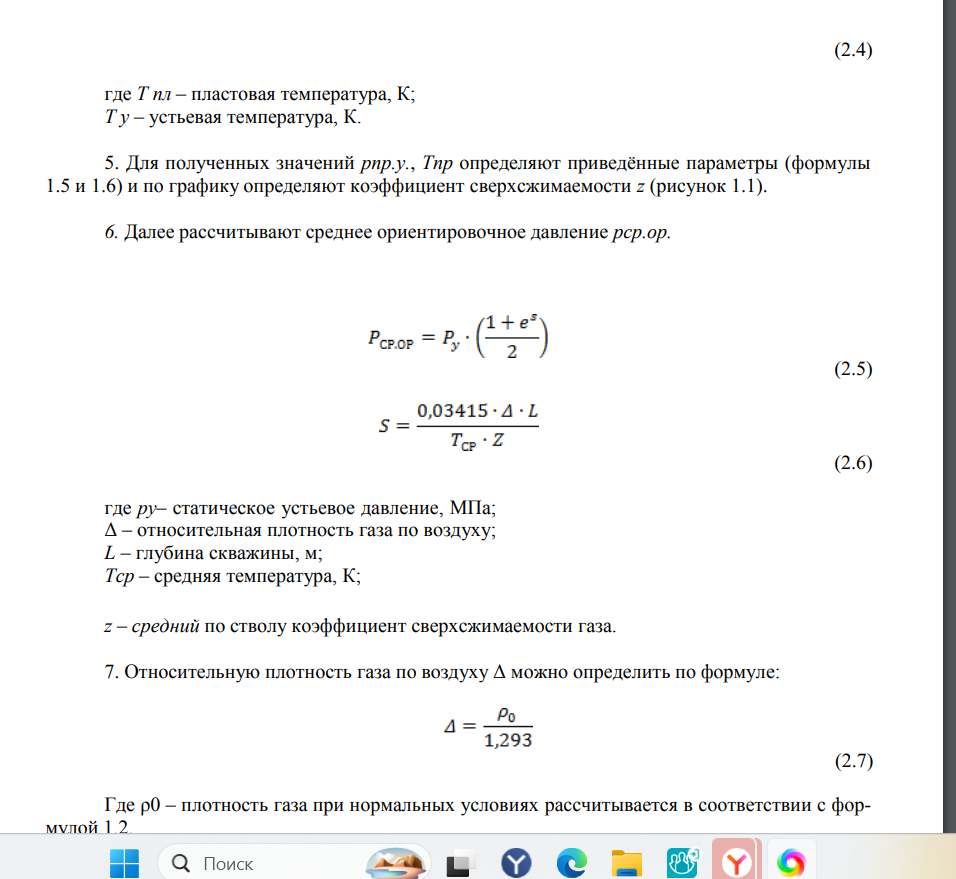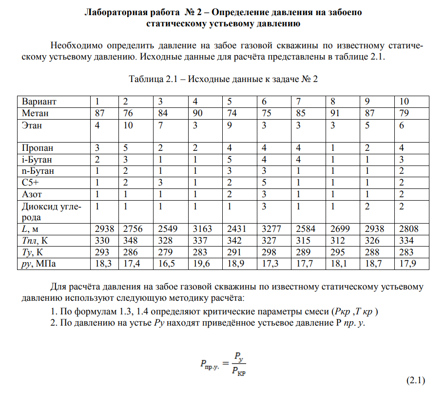 Определение давления на забое по статическому устьевому давлению, Вариант 7