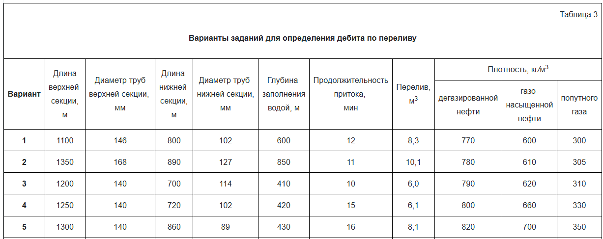 1. По переливу предварительно закачанной в бурильные трубы заливочной жидкости (табл. 3). Учтите, что глубина заполнения водой измеряется от земной поверхности.