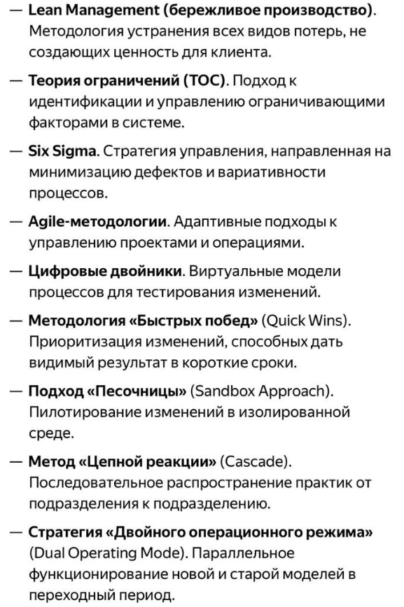 Вам необходимо взять любой бизнес-процесс или отдел в организации, или всю организацию и, используя хотя бы одну методологию операционного менеджмента, которую мы изучали на занятиях, составить презентацию в которой вы покажете: 1) текущее положение организации, 2) проблемы которые возникают, 3) что вы хотите изменить, 4) как вы это планируете делать, 5) чего достигните.