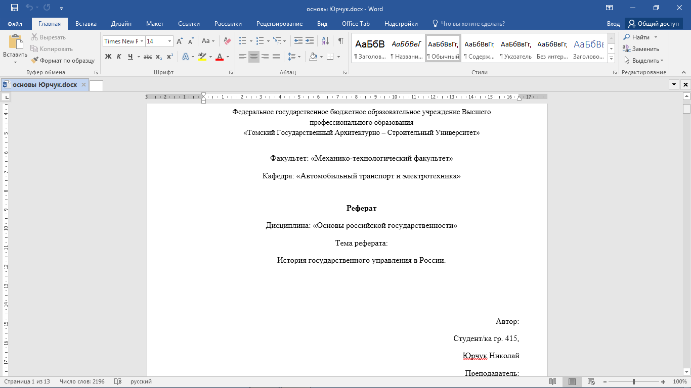 выполнил - Юрчук Николай Сергеевич студент 415 группы