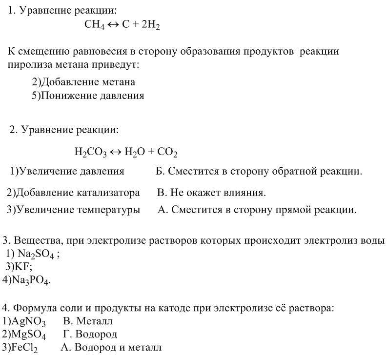 4. Закончите уравнения реакций обмена, которые идут до конца: а) KOH + H3PO4 → б) AgNO3 + FeCl2 → в) Na2S + Co(NO3)2 → г) CuCl2 + KNO3 → д) H2SO4 + NaCl → е) ZnSO4 + KOH → Укажите