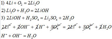 Написать полное и краткое ионное уравнения реакций Li-Li2O-LiOH-Li2SO4-Li3PO4